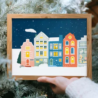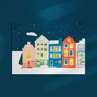 Dit kleurrijke winterse straatje is perfect om je huis op te vrolijken tijdens donkere winter dagen, of als wanddecoratie tijdens feestdagen zoals kerst en oud & nieuw.